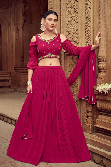 Georgette Fabric Rani Color Elegant Function Style Readymade Lehenga