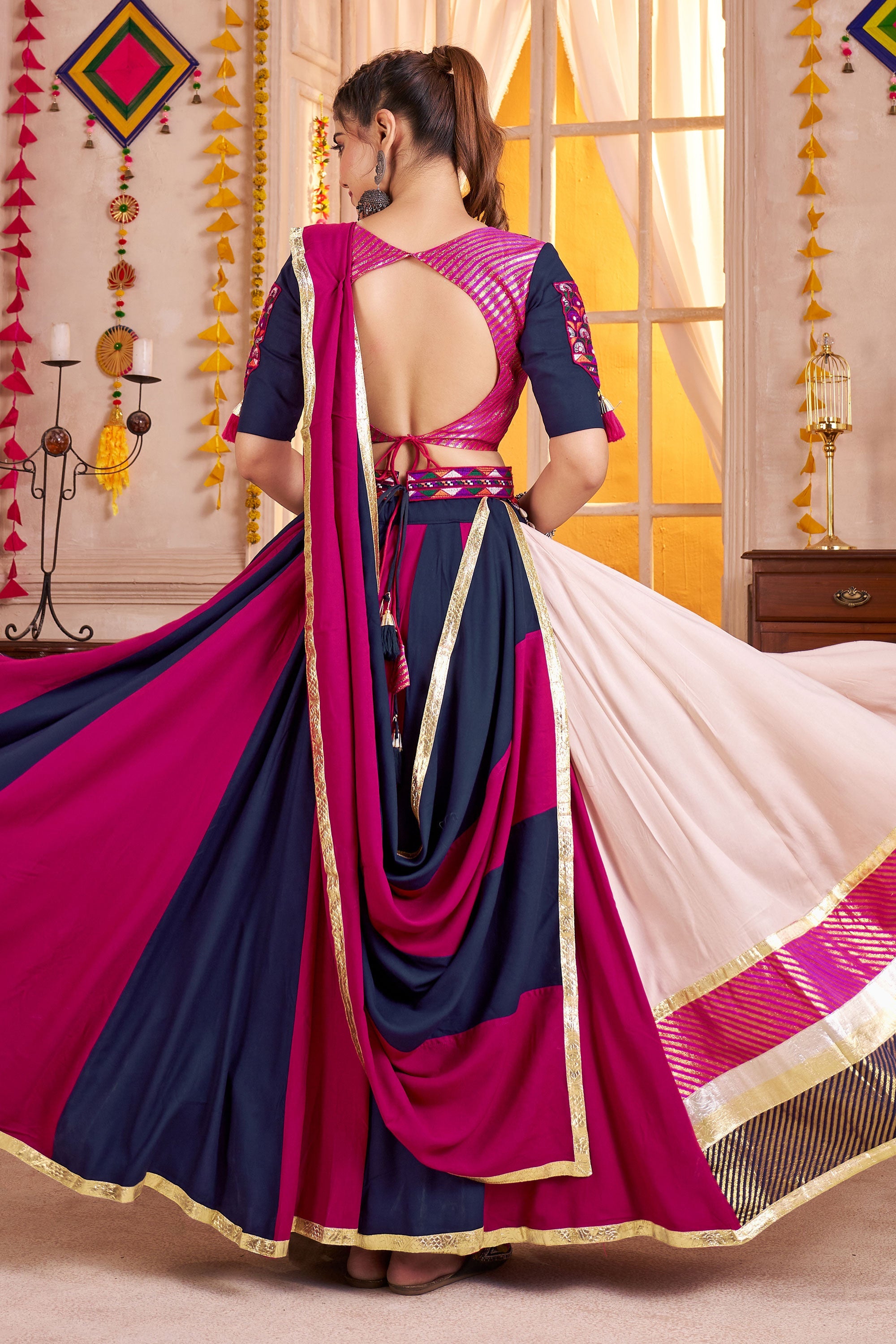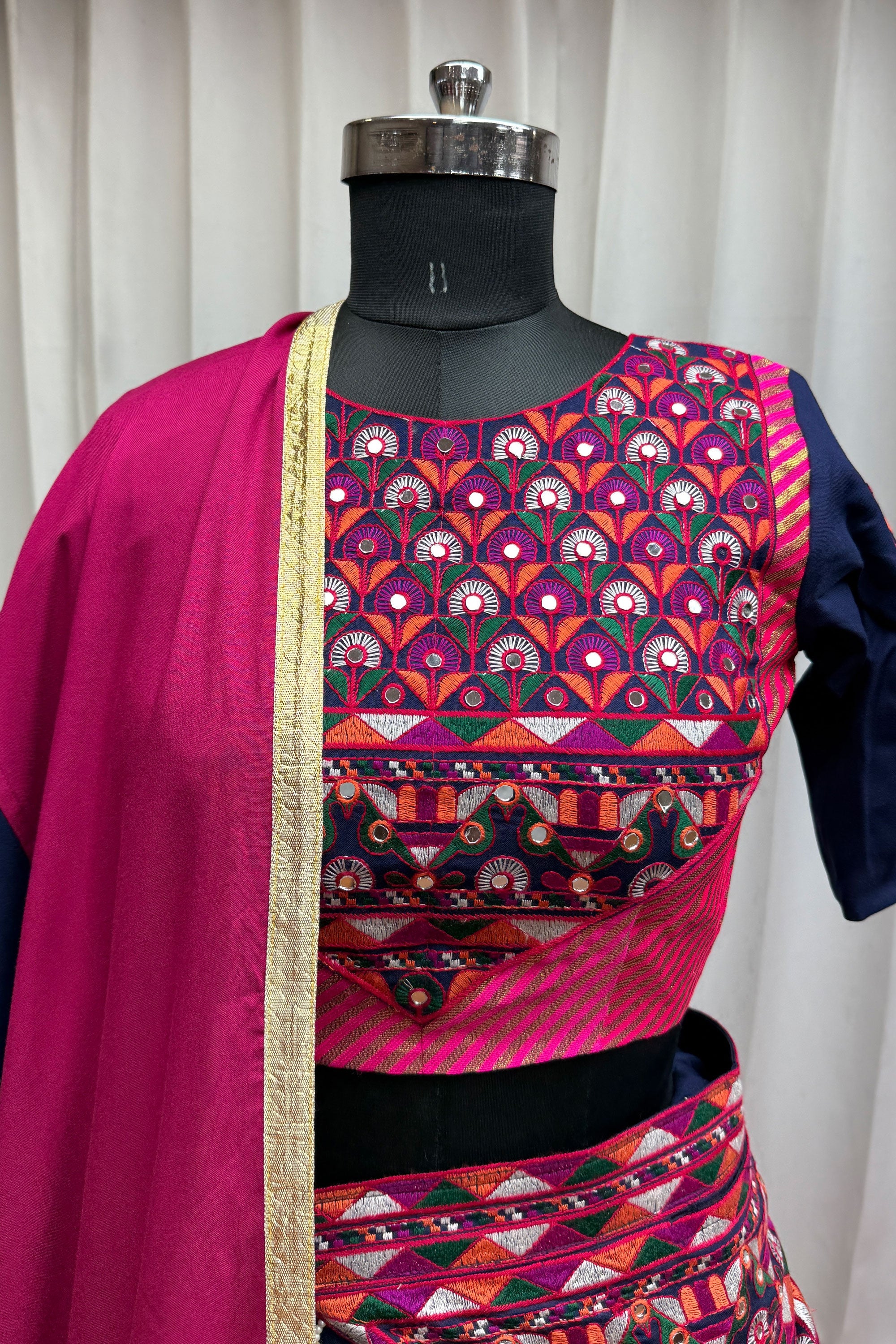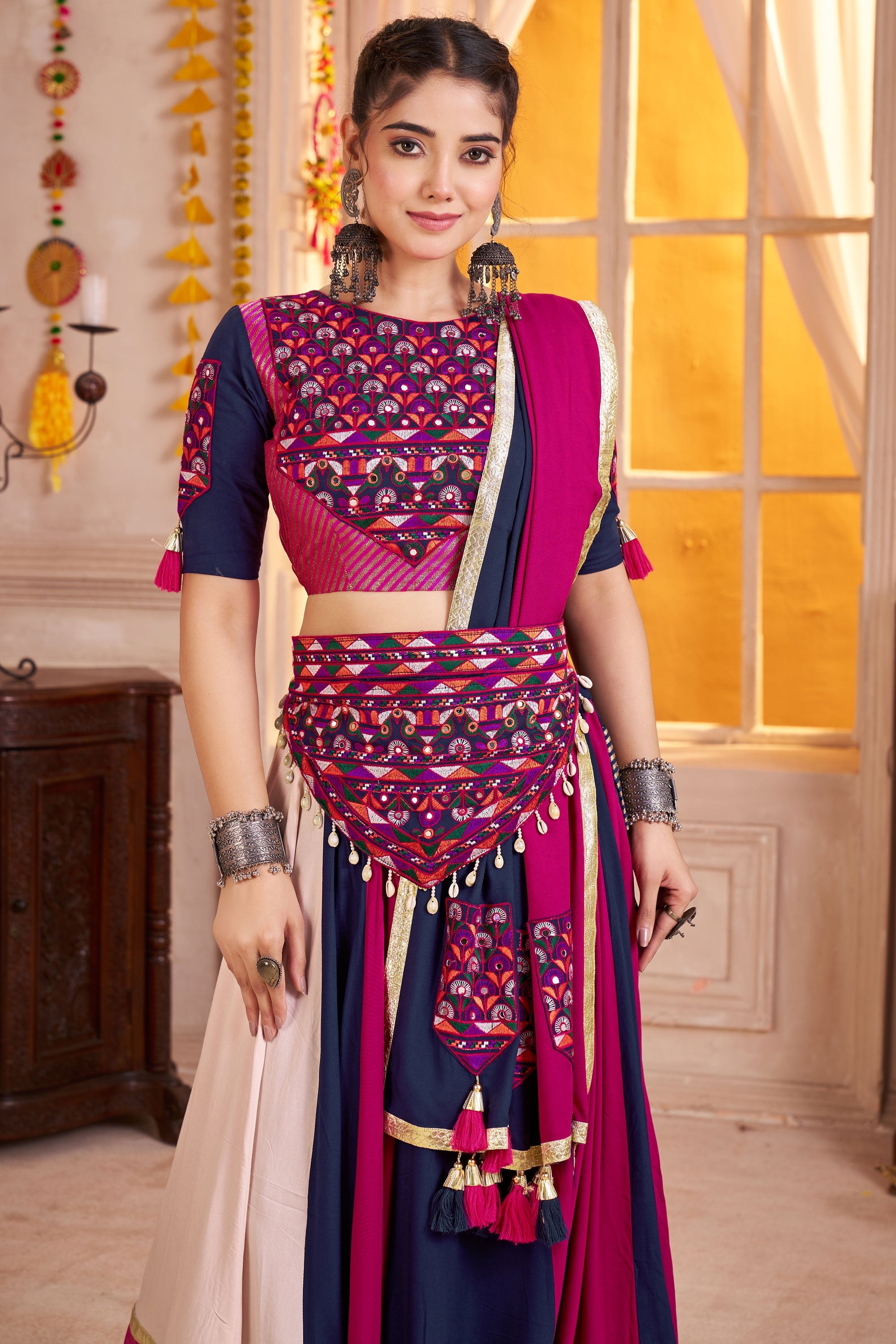 Celebrate Navratri in style with this beautifully crafted viscose cotton lehenga, featuring gorgeous embroidered mirror details. Designed for ultimate comfort and effortless grace, the breathable fabric keeps you relaxed while adding a festive touch to your attire. The gleaming mirror work highlights the craftsmanship, giving it a luxurious and striking look suitable for any celebration. Pair it with your favorite blouse and traditional jewelry to create an ensemble that's both fashionable and cultural. Lightweight, stylish, and easy to wear, this lehenga makes every occasion more memorable. Perfect for dance nights and family events alike.