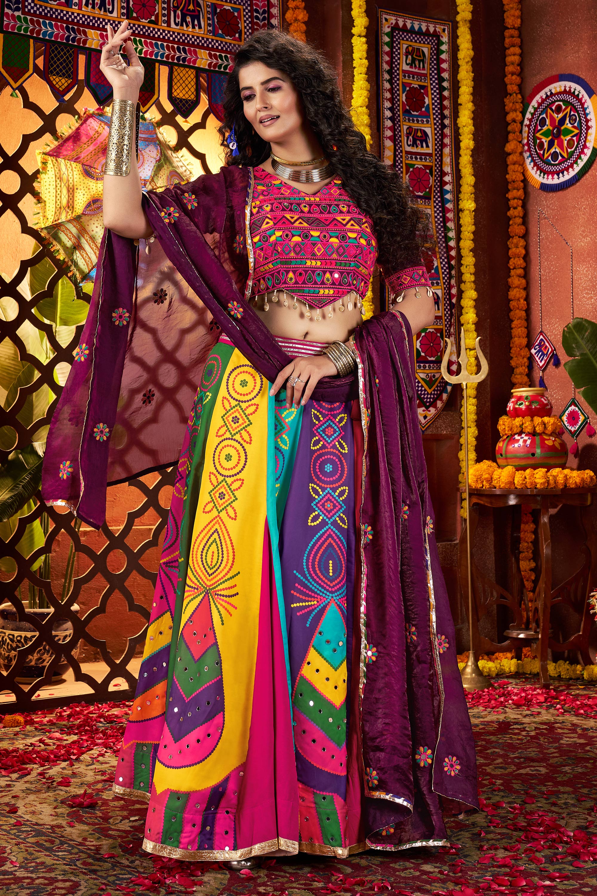 Celebrate Navratri in style with this stunning Navratri Special Real Mirror Work Lehenga Choli. This traditional attire combines vibrant colors with intricate real mirror work to give you an eye-catching look perfect for festive celebrations. Made from high-quality materials, it is lightweight and comfortable to wear all day or night. The detailed stitching and rich embellishments bring out the elegance in this ethnic outfit. Whether you’re attending a Garba night or hosting a festive party, this Lehenga Choli is sure to make you stand out. Pair it with traditional jewelry and complete your dazzling look effortlessly!