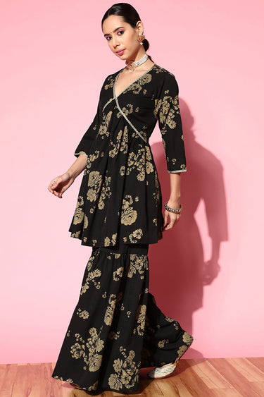Exclusive Black Color Crepe Fabric Festive Wear Printed Readymade Top With Bottom Set