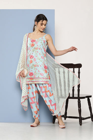 Exclusive Crepe Fabric Readymade Kurti Bottom Set In Sky Blue Color