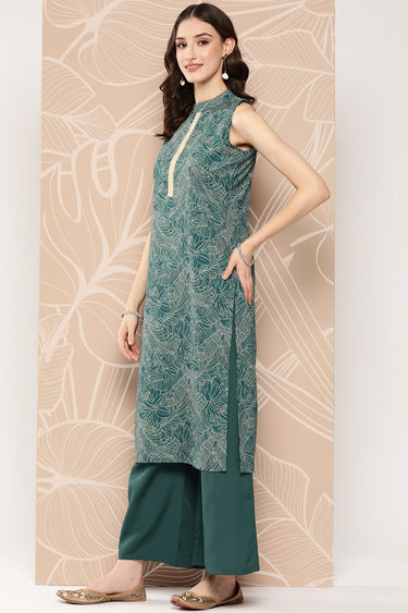 Exclusive Dark Green Crepe Fabric Festive Wear Floral Printed Readymade Top With Bottom Set