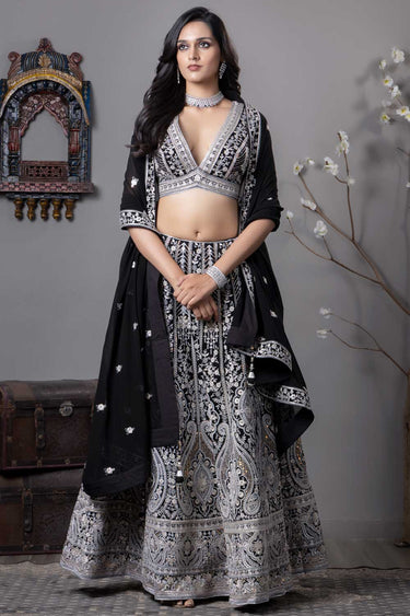 Exclusive Embroidered Black Color Readymade Lehenga In Georgette Fabric