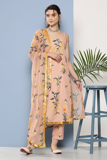 Exclusive Peach Color Crepe Fabric Readymade Printed Kurti With Bottom