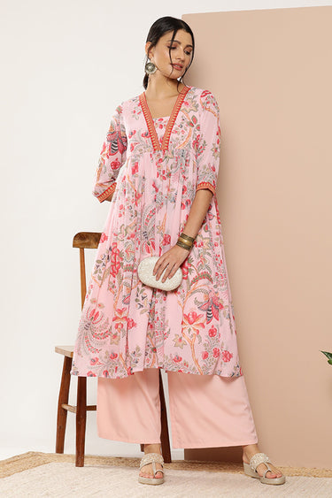 Exclusive Pink Color Georgette Fabric Festive Wear Printed Readymade Top With Bottom Set