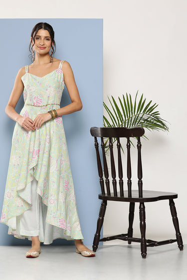 Exclusive Sea Green Color Viscose And Rayon Fabric Readymade Kurti With Bottom