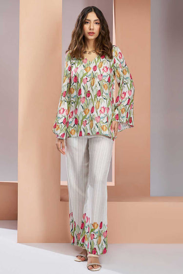 Step into effortless style with this readymade co-Ord set, crafted from luxurious Muslin Silk for a soft and breezy feel. Designed for casual chic, the set features intricate printed work, adding a touch of modern elegance to your everyday wardrobe. Whether you're heading out for brunch or a relaxed evening, this co-ord set is your go-to for comfort with class. Due to digital photography, slight color variations may occur.