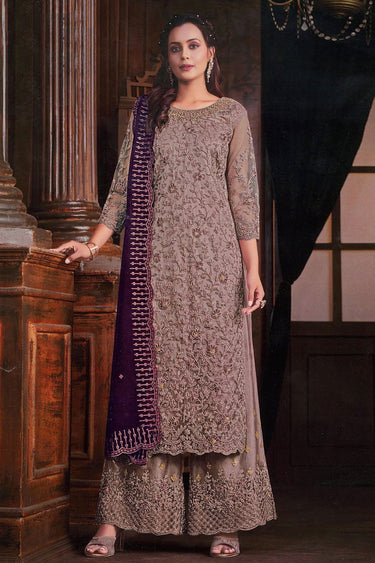 Lavender Color Net Fabric Tempting Embroidered Palazzo Suit