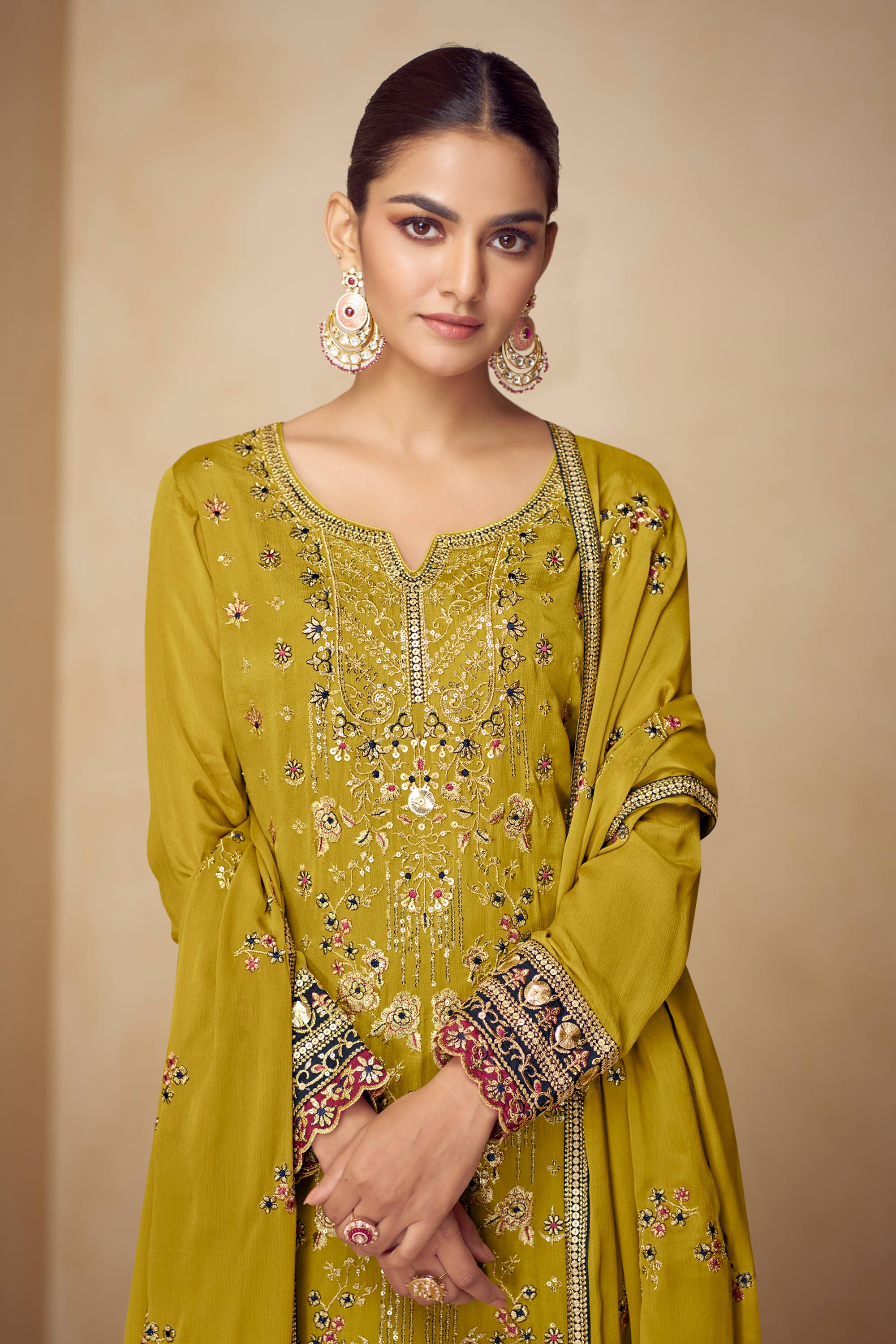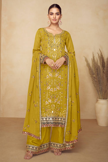 Lovely Mustard Embroidery Work Readymade Palazzo Salwar Kameez