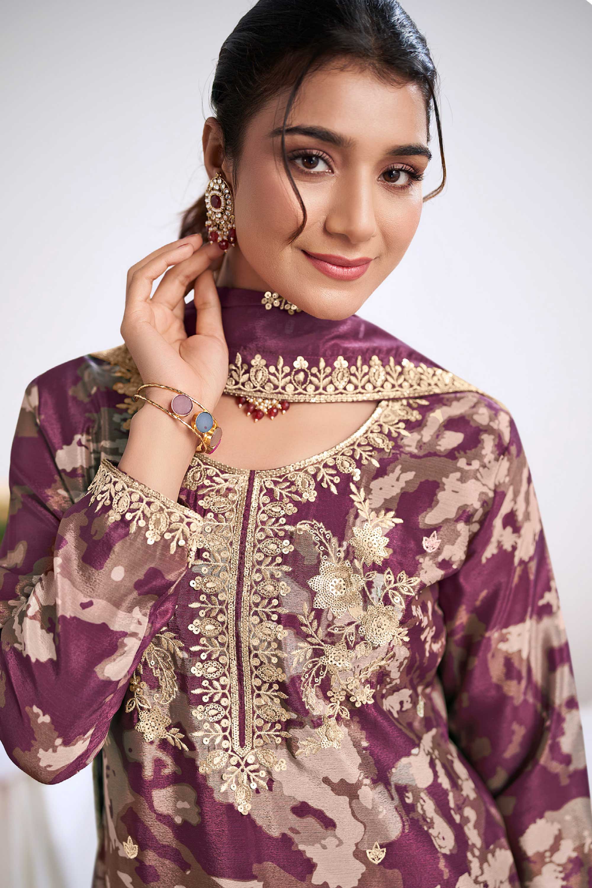 Upgrade your ethnic wardrobe with the Chinon Embroidered Designer Readymade Palazzo Salwar Kameez. Crafted with premium-quality chinon fabric, this elegant outfit offers a luxurious look with its intricate embroidery. The included palazzo pants and kurta provide unmatched comfort while enhancing your style. Perfect for weddings, festive occasions, or family gatherings, this outfit effortlessly blends tradition with contemporary fashion. Available in various sizes and designed for an easy, ready-to-wear fit, it’s ideal for those looking to save time without compromising on style. Make a stunning impression with this timeless addition to your collection!