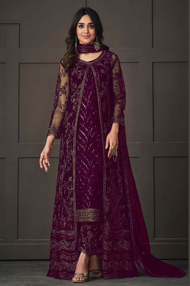 Net Fabric Purple Color Party Style Salwar Suit With Koti