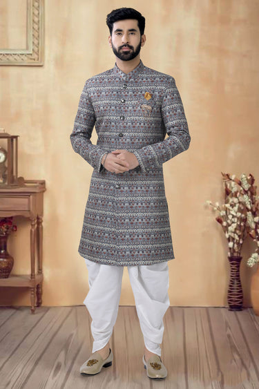 Cotton Grey Color Wedding Wear Readymade Designer Men Indo Western