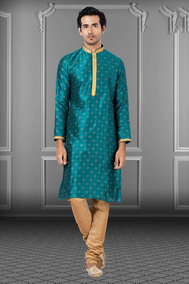 Dhupion Fabric Teal Festive Wear Readymade Men Stylish Kurta Pyjama