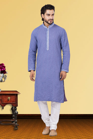 Purple Georgette Fabric Readymade Kurta Pyjama For Men