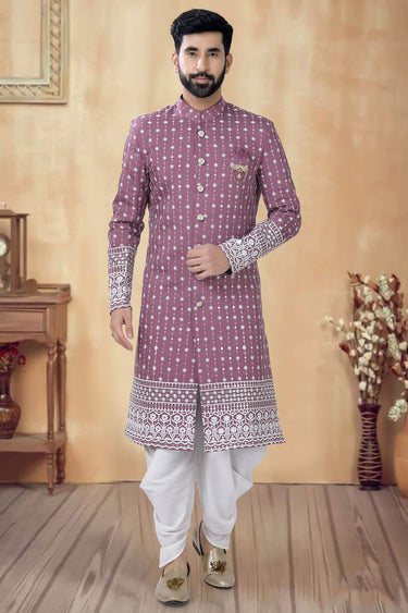 Purple Gorgeous Cotton Fabric Wedding Wear Readymade Indo Western For Men