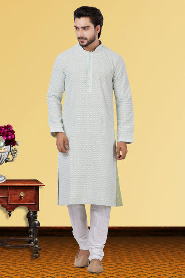 Sea Green Georgette Fabric Designer Readymade Kurta Pyjama For Men