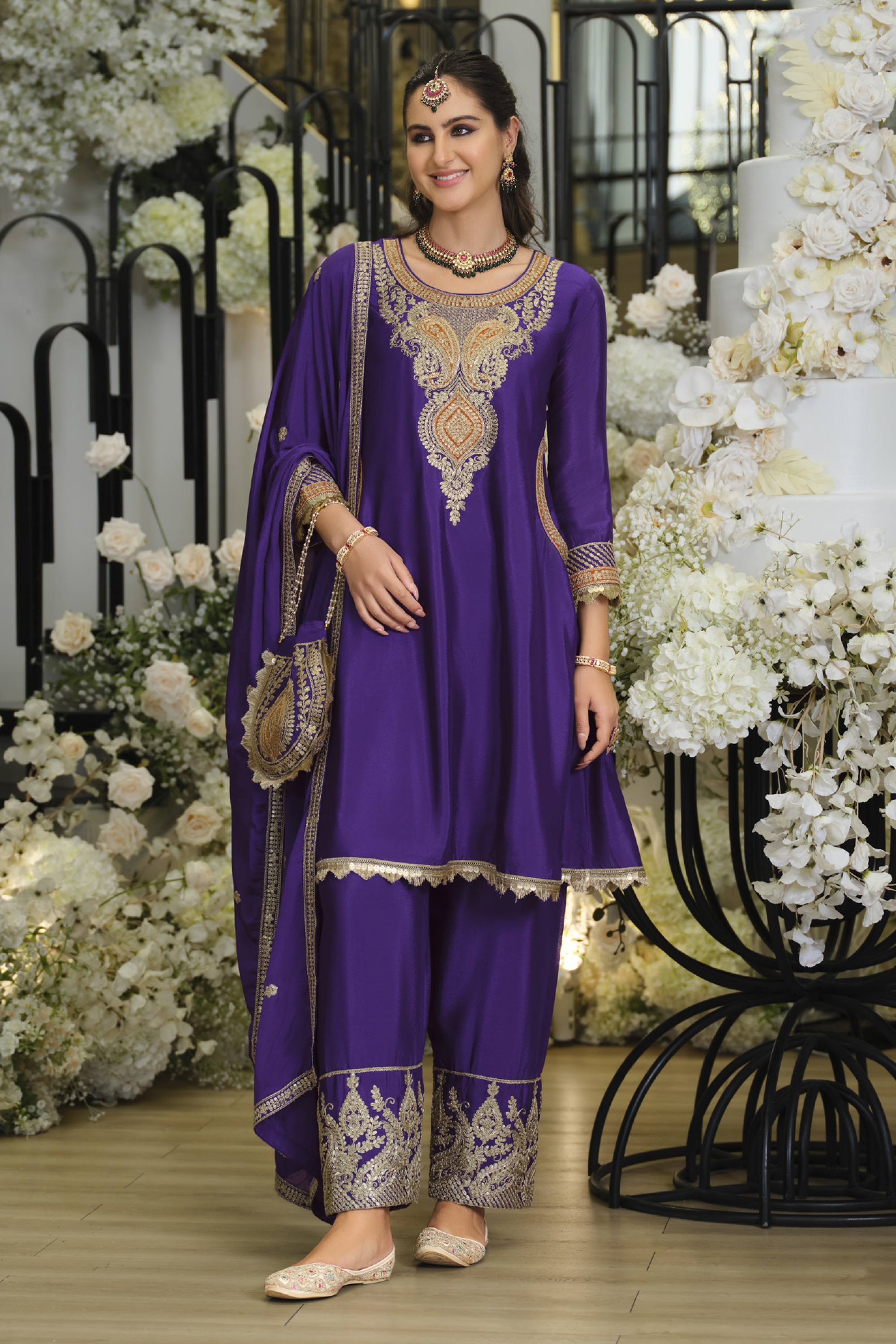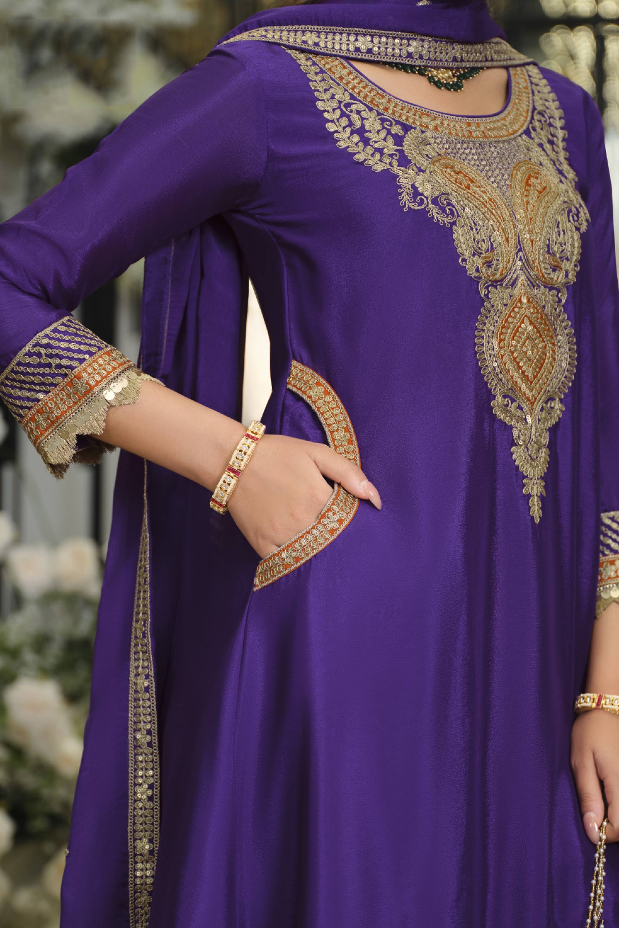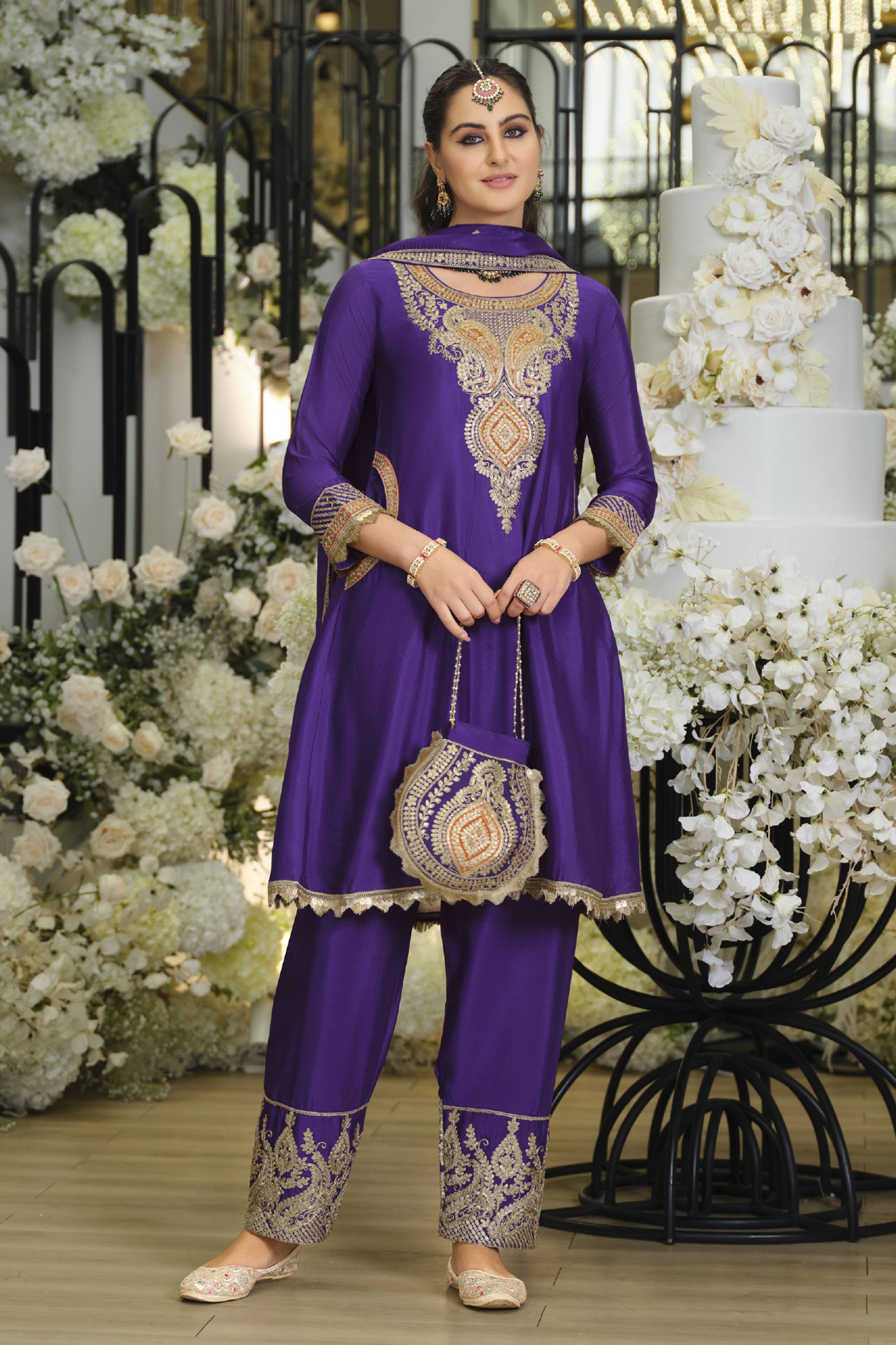 Purple Sangeet Wear Chinon Embroidered Readymade Designer Salwar Kameez