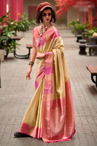 Appealing Weaving Work On Banarasi Silk Fabric Saree In Beige Color