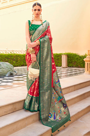 Art Silk Fabric Maroon Color Saree With Winsome Paithini Printed Work