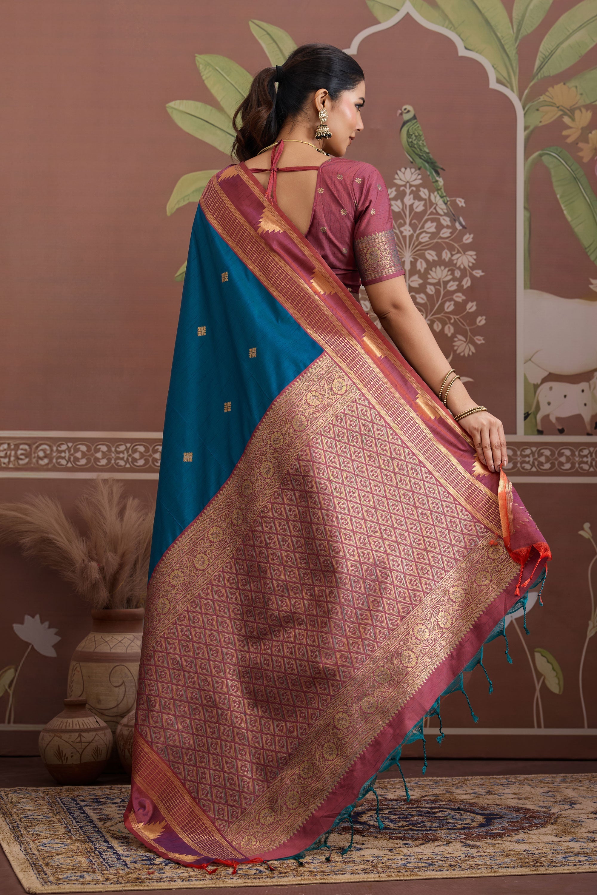Step into effortless sophistication with this stunning Handloom Zari Woven Tussar Silk Saree. Featuring intricate zari work and crafted from premium Tussar silk, this saree combines luxurious comfort and timeless style. Perfect for celebrations, traditional gatherings, or family events, it adds an unmatched touch of grace to your attire. Paired with an unstitched blouse piece, it offers endless customization options to suit your style. Redefine your wardrobe with a versatile saree that enhances any special moment with its beauty and charm.