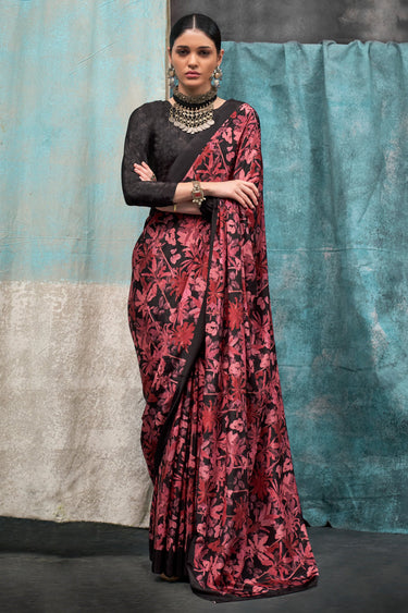Casual Wear Soothing Printed Crepe Fabric Saree In Black Color