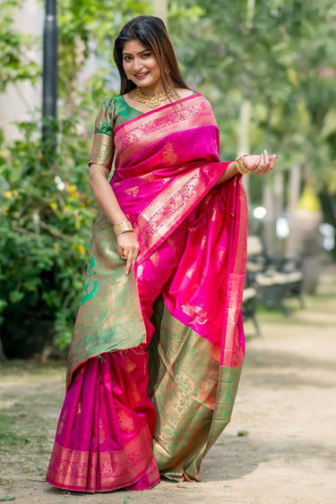 Delightful Rani Color Zari Weaving Rich Pallu Tussar Silk Party Wear Saree
