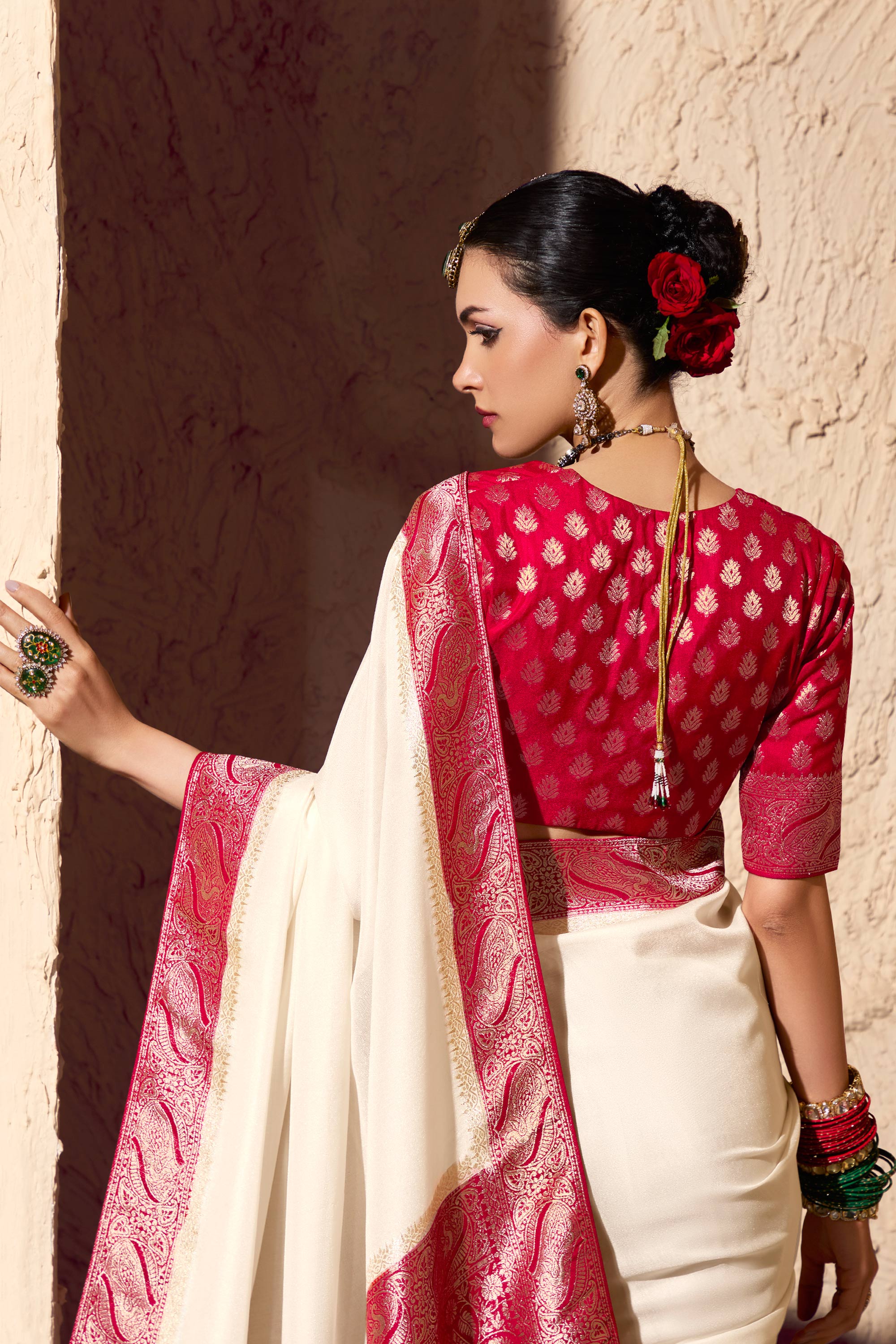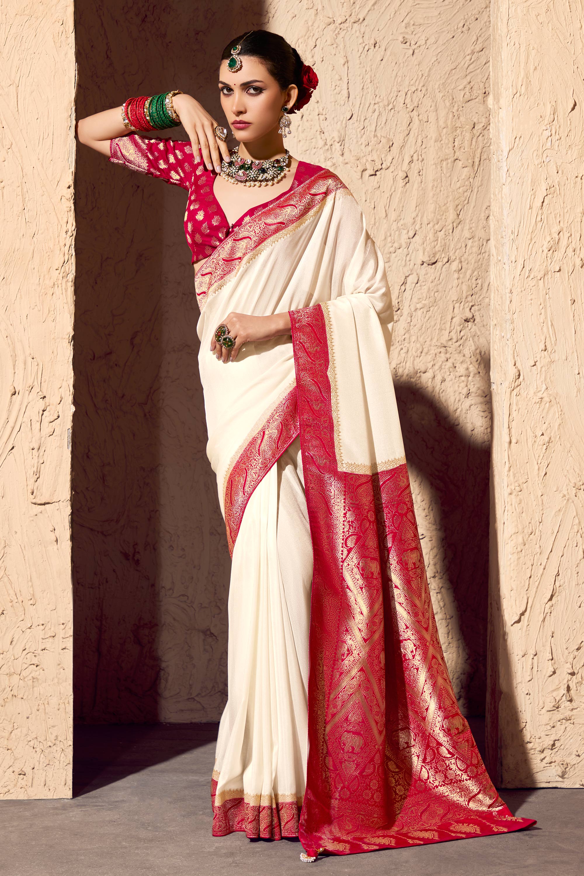 Designer Beige Weaving Work Saree In Georgette Fabric
