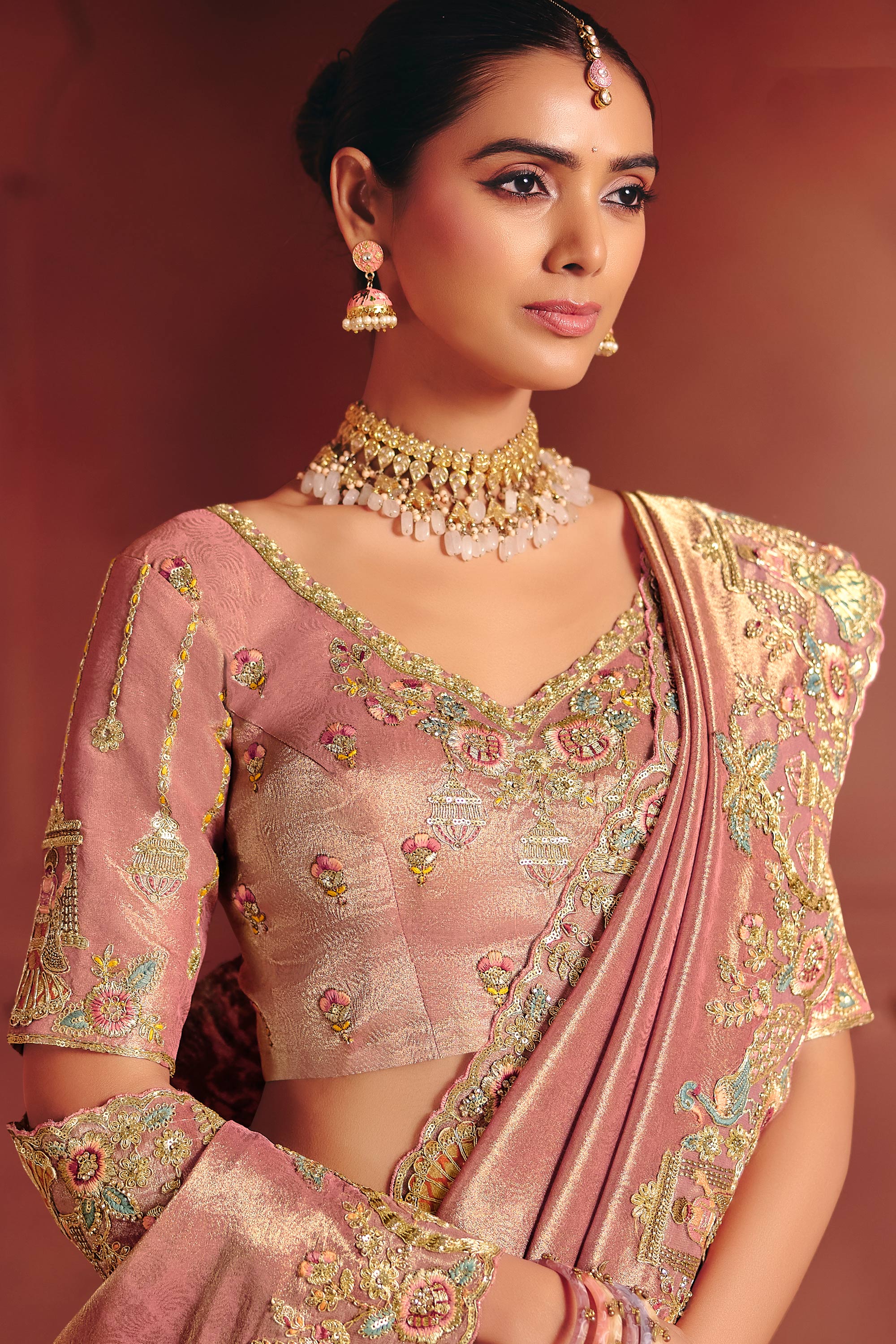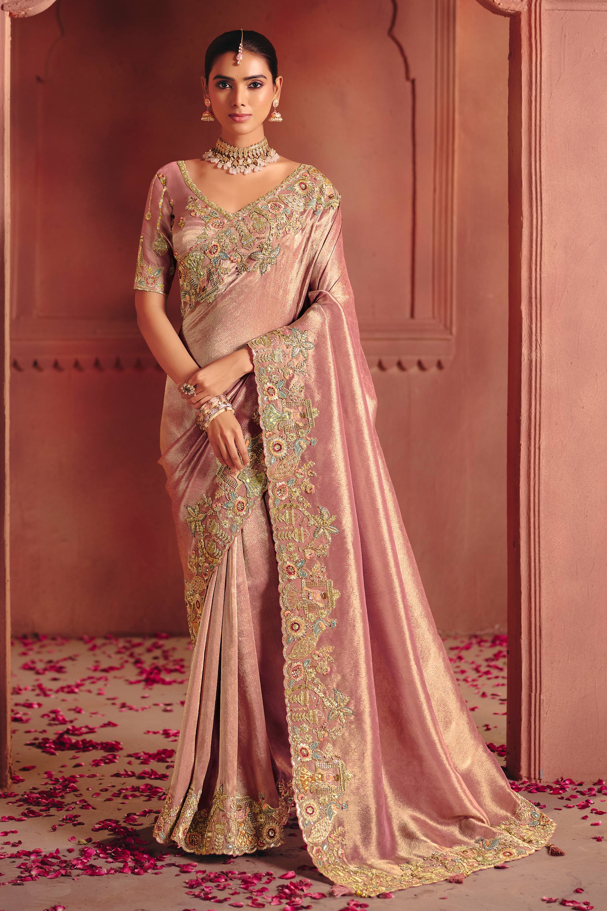 Embroidered Silk Pink Saree For Wedding Wear