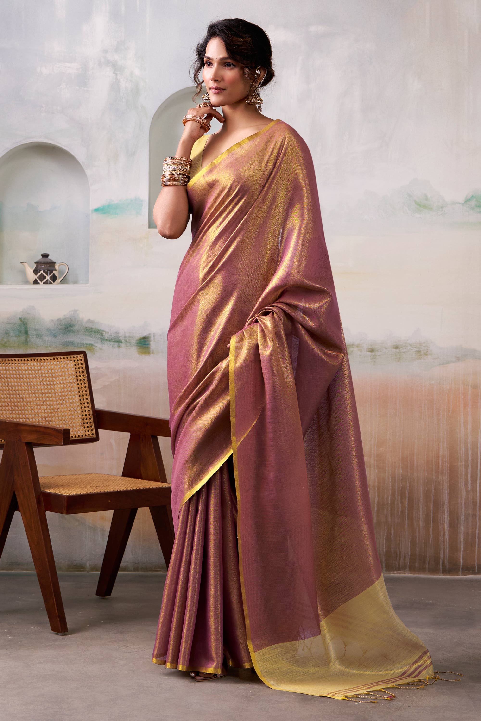 Step into grace with the Festive Wear Elegance Tissue Handloom Saree, a fine example of timeless craftsmanship. This saree is perfect for any celebration, blending traditional aesthetics with a modern touch. Made from high-quality tissue fabric, it offers a lightweight feel and an appealing shimmer that will ensure you stand out. Designed for comfort and charm, the intricate handloom work adds authenticity and character. Whether it's a wedding, festive occasion, or a formal gathering, this saree provides effortless style. Pair it with your favorite accessories to complete the look. A thoughtful gift option as well, this saree celebrates the beauty of Indian traditions in every weave.