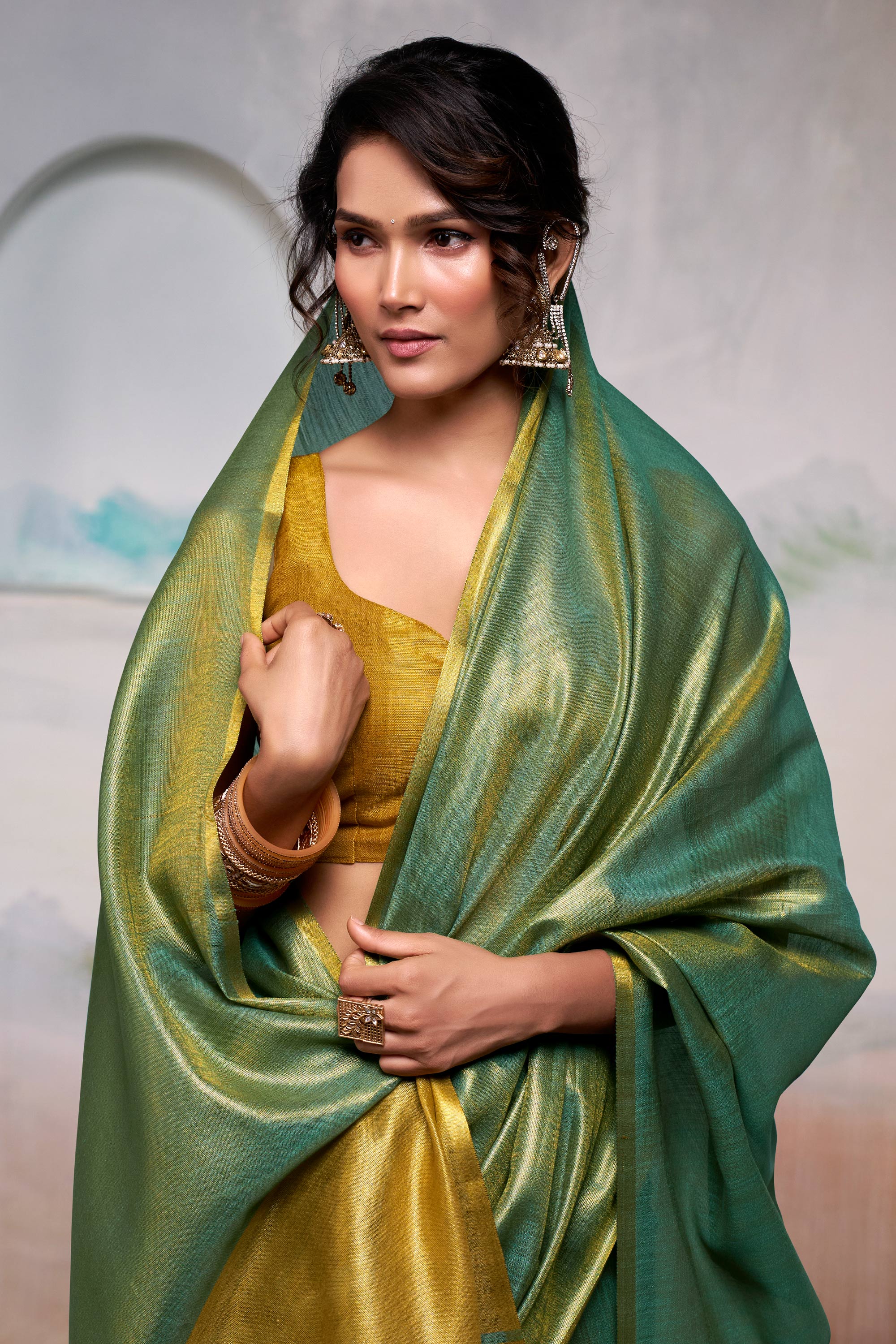 Festive Wear Elegance Tissue Handloom Saree In Sea Green Color