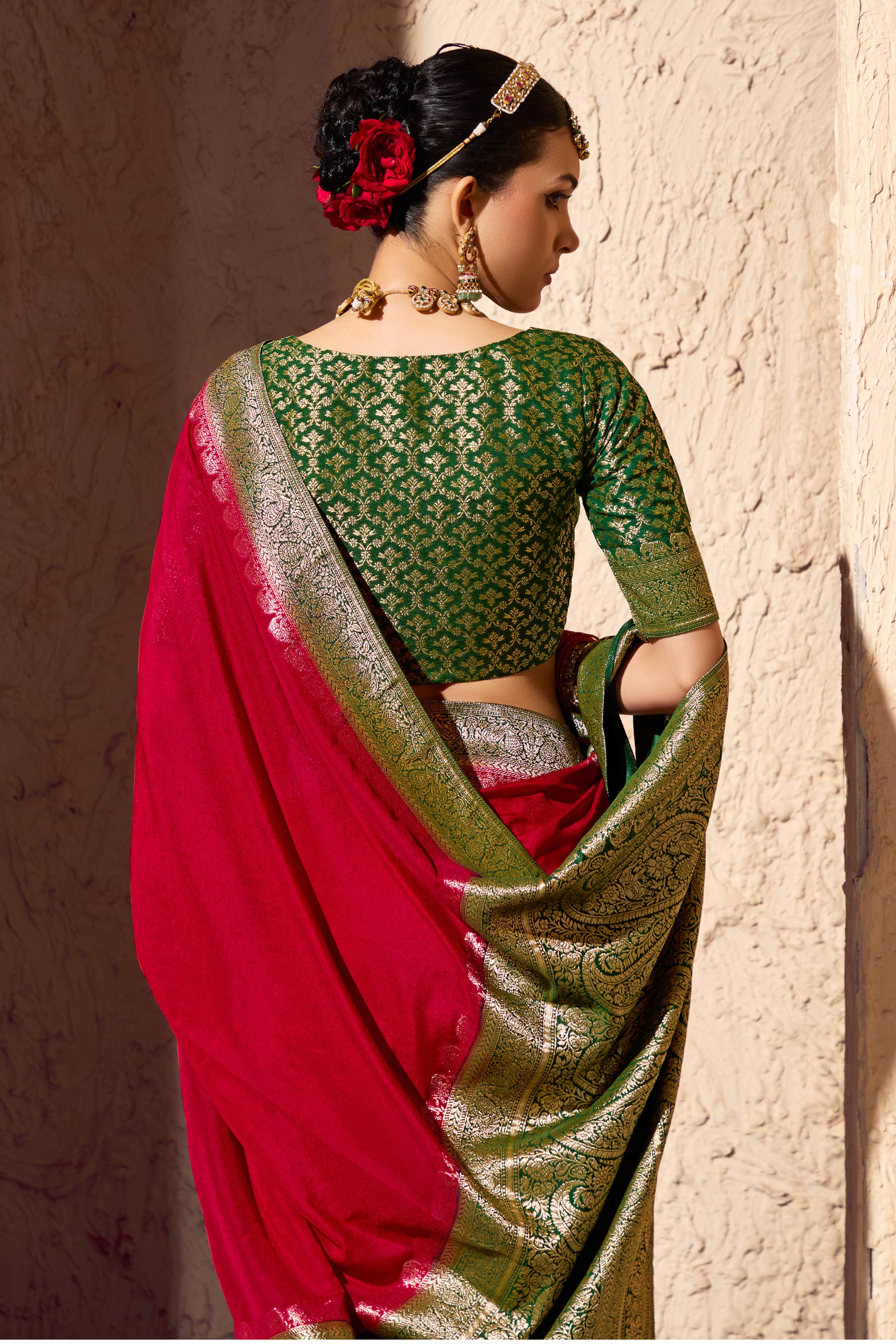 Festive Wear Weaving Work Georgette Saree – Grace your wardrobe with this stunning saree made from lightweight georgette fabric. Perfect for traditional events or festive celebrations, this saree features intricate weaving work that adds charm and sophistication to your look. The soft fabric ensures comfort for long hours, making it an ideal choice for day or evening occasions. Available in a variety of vibrant colors, this saree will make you the center of attention at any gathering. Pair it with elegant jewelry and heels to complete your style. Make every moment special with this timeless saree.