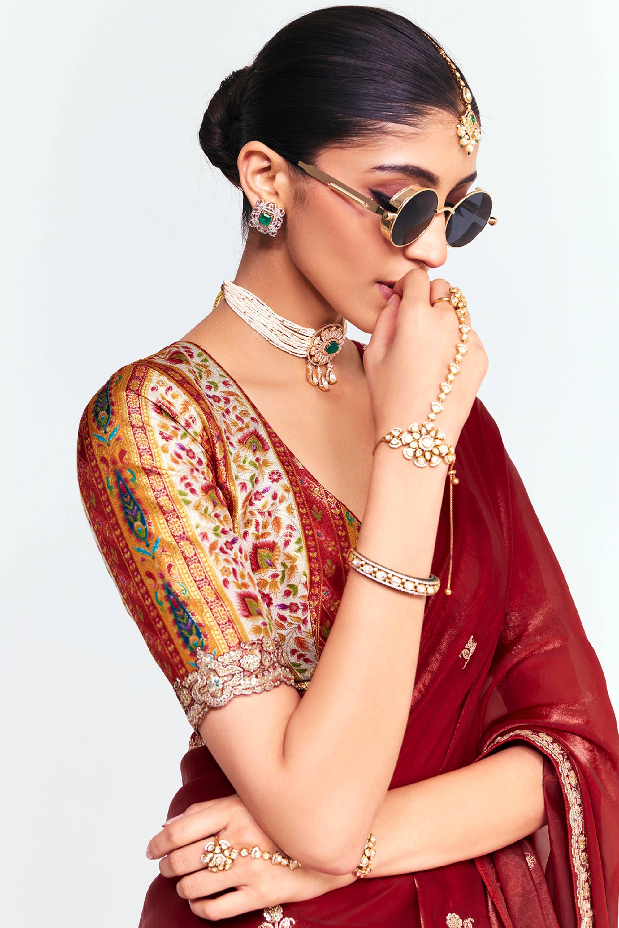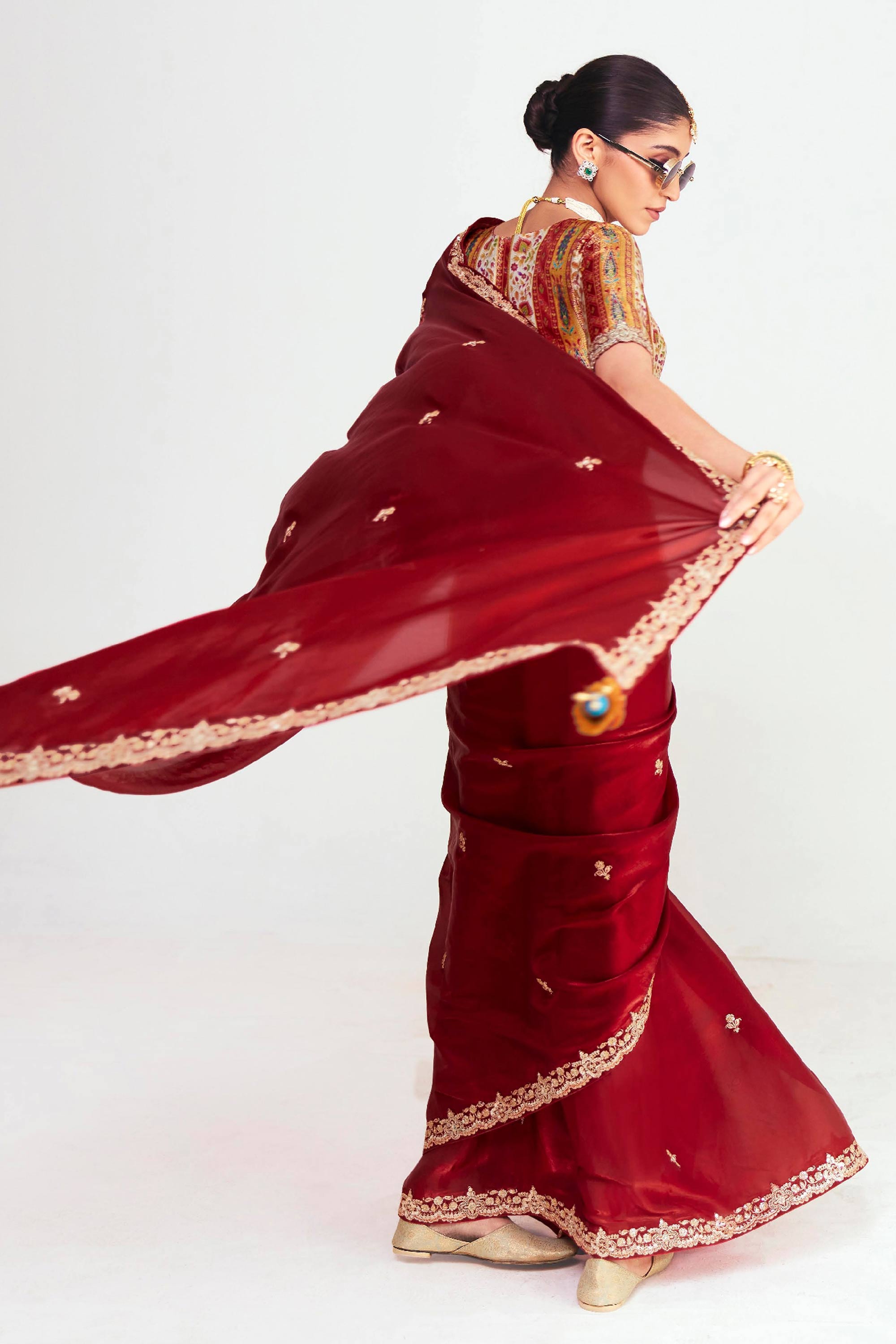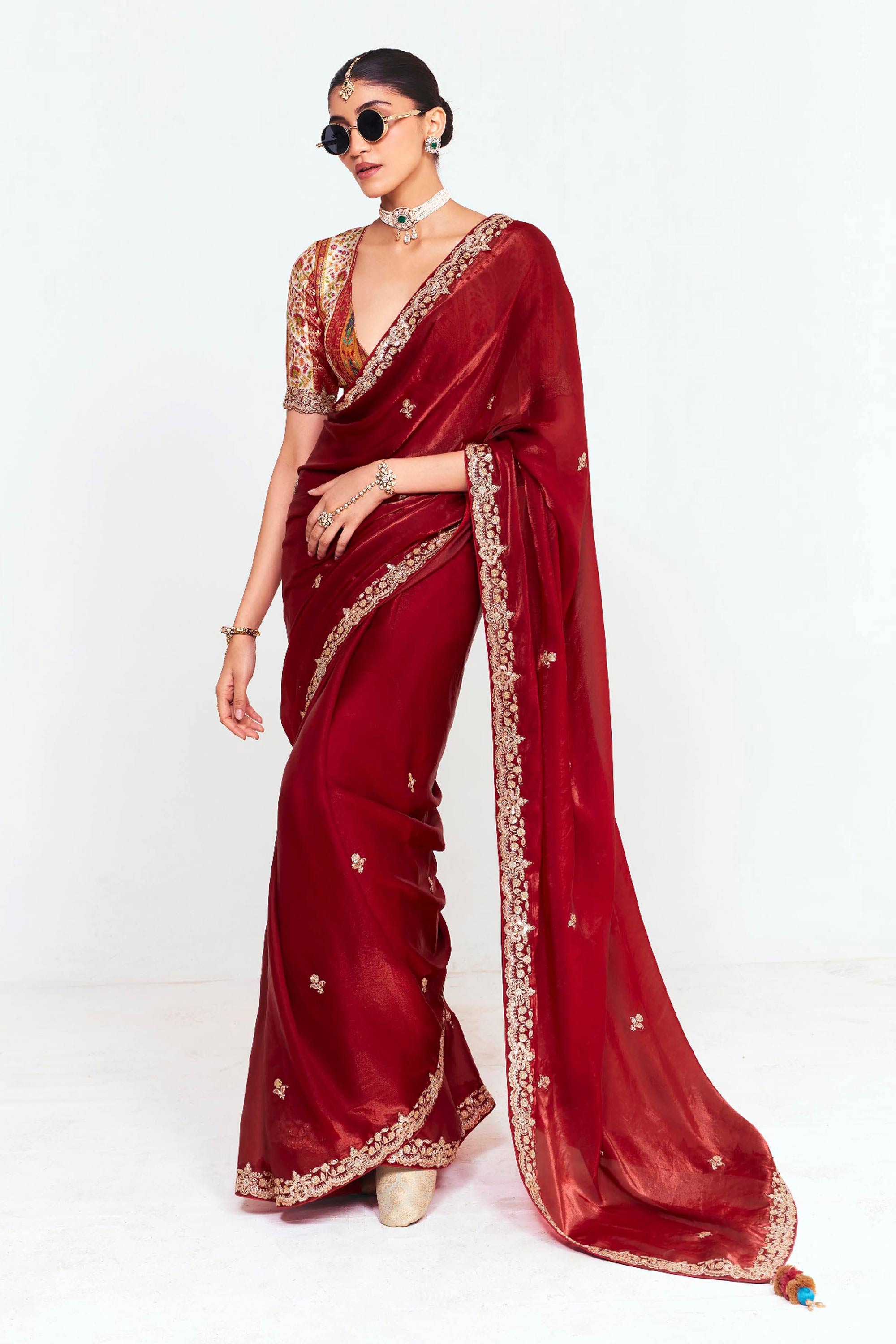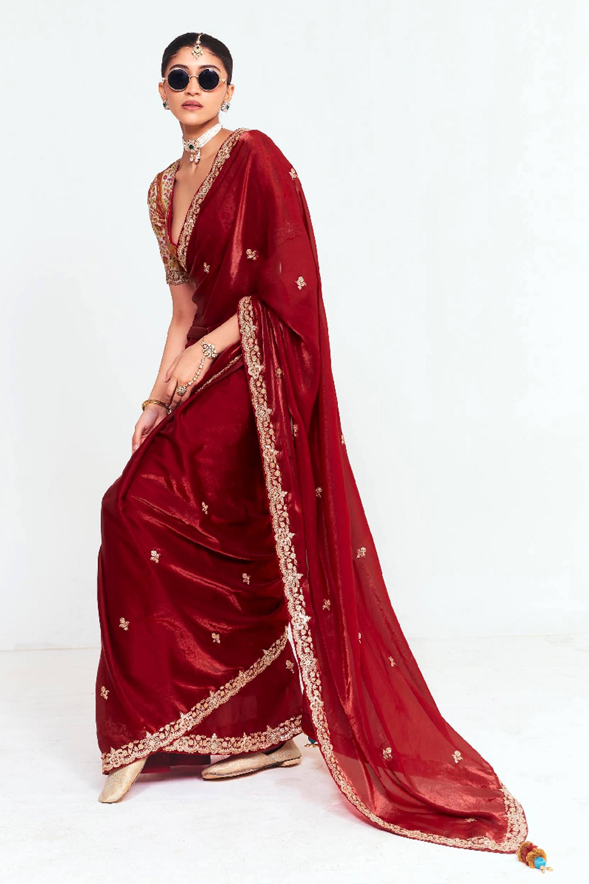 Maroon Function Wear Art Silk Lace Border Work Saree