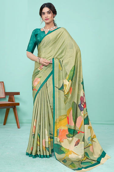 Multi Color Printed Pleasant Crepe Fabric Casual Saree