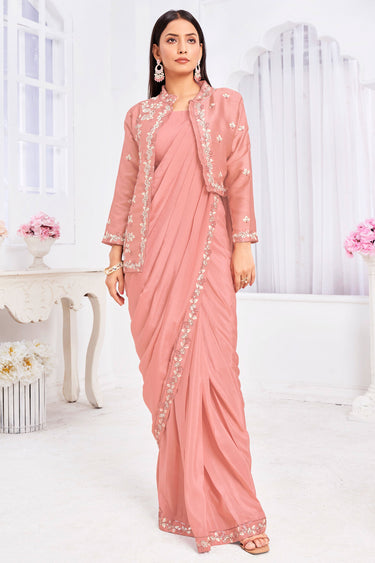 Pink Color Glorious Art Silk Fabric Ready To Wear Ruffle Saree