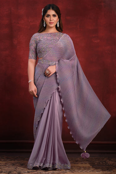 Discover elegance with our Champagne reach Ready To Wear Stone Work Saree. This exquisite piece blends tradition with contemporary design, featuring delicate stone embellishments that add a touch of sparkle. The soothing champagne reach color is perfect for any festive occasion or special event. Made from high-quality fabric, this saree drapes beautifully, providing a comfortable and flattering fit. Ideal for weddings, parties, or cultural celebrations, it will make you stand out in any crowd. Easy to wear and maintain, it comes pre-stitched, saving you time and hassle.
