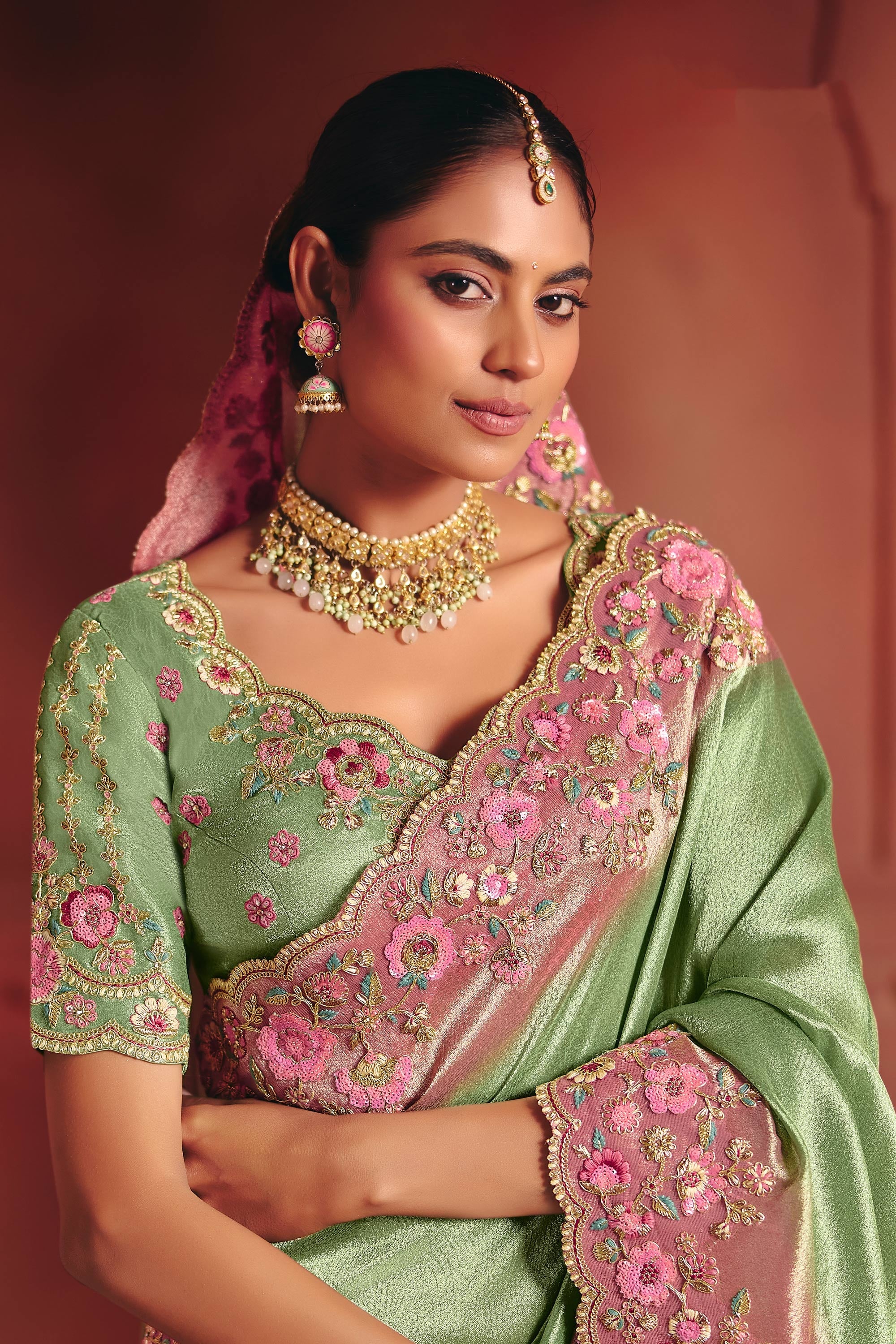 Silk Fabric Embroidered Green Wedding Wear Saree