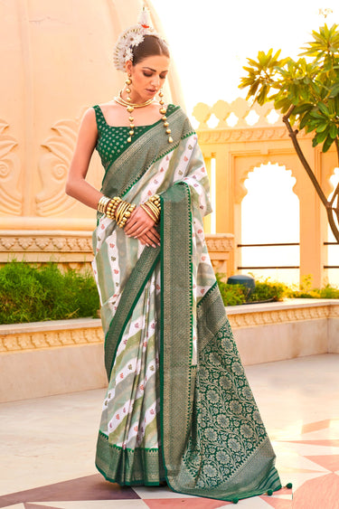 Solid Art Silk Fabric Weaving Work On Saree In Dark Green Color