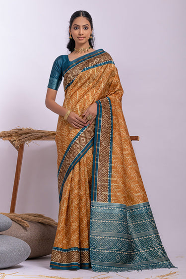 Yellow Color Soft Tussar Silk Function Wrear Fancy Printed Saree