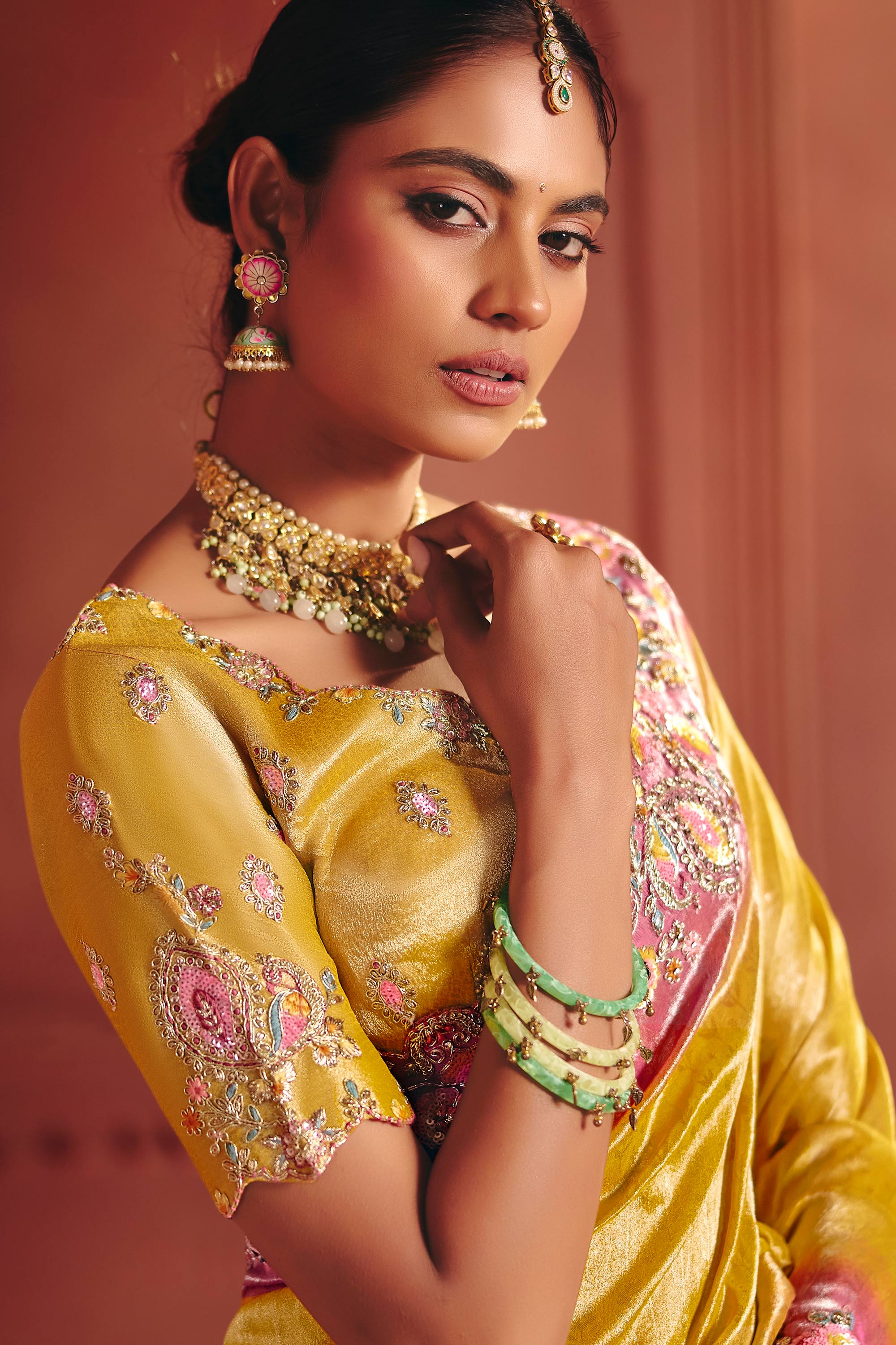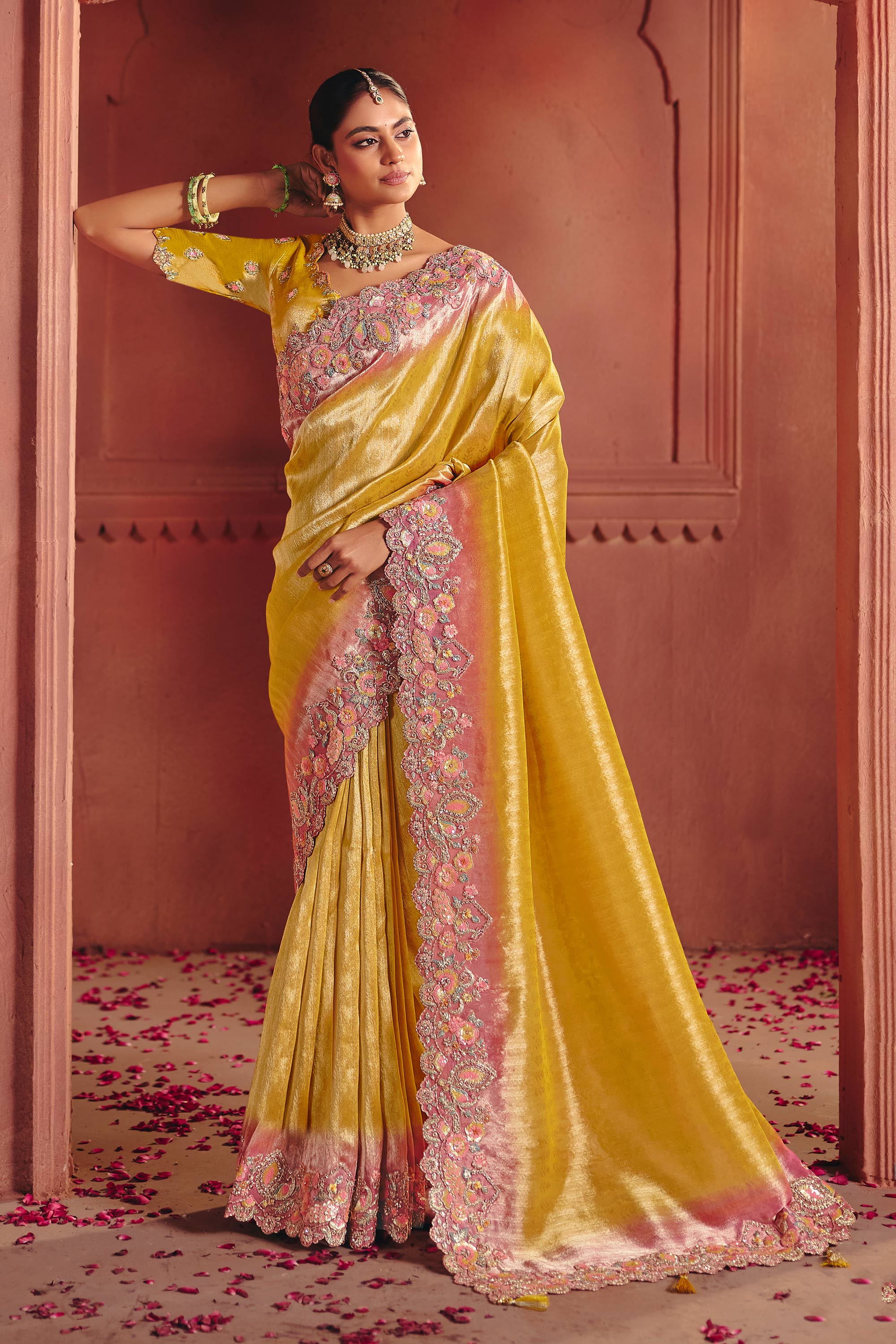 Yellow Wedding Wear Silk Fabric Embroidered Saree
