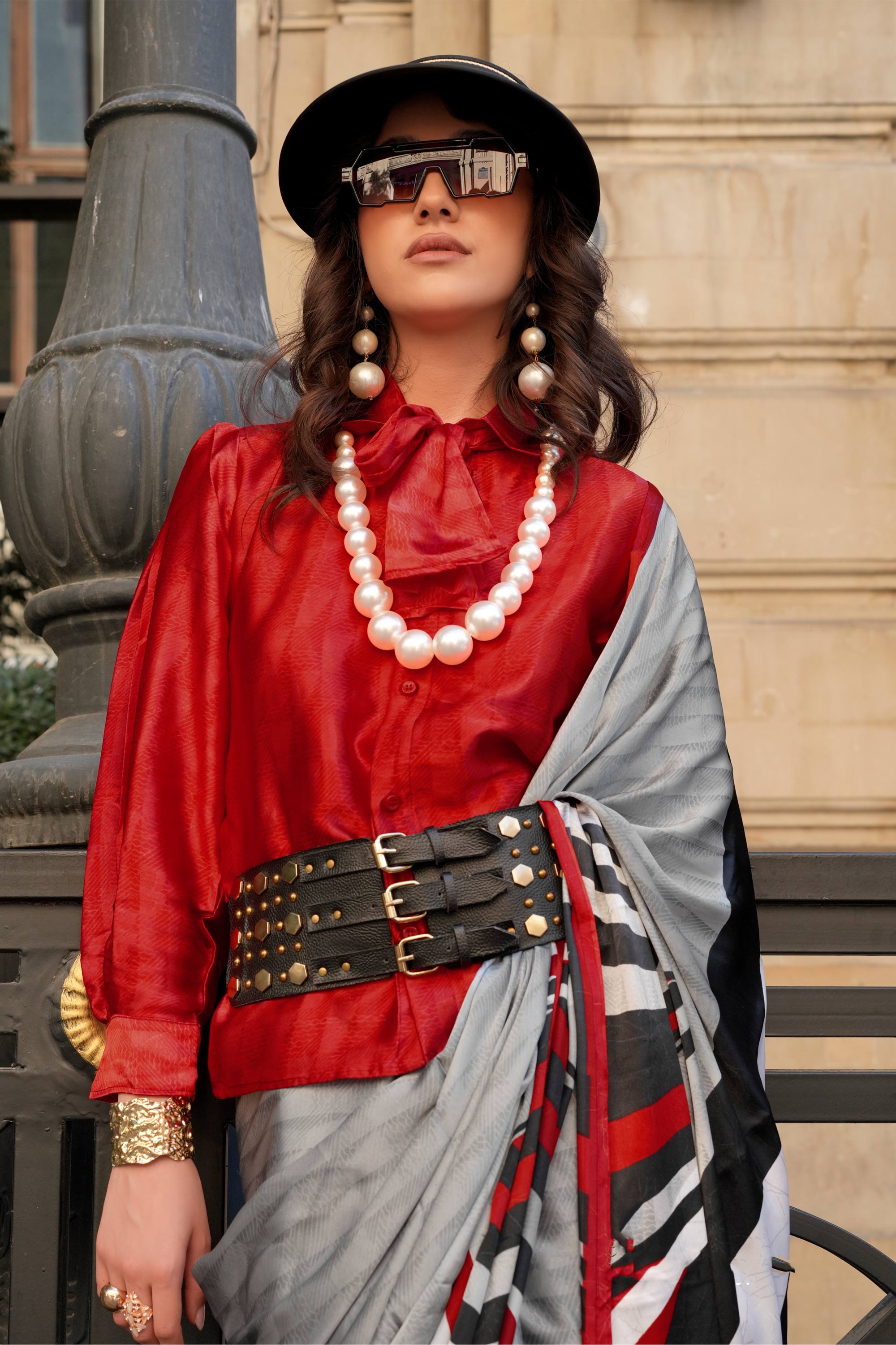 Satin Digital Printed Multi Color Saree For Casual Wear