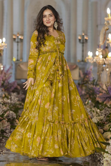 Chinon Fabric Green Color Attractive Readymade Sharara Suit With Koti