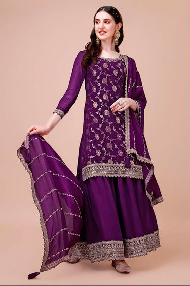 Engaging Purple Color Chinon Fabric Function Wear Sharara Suit
