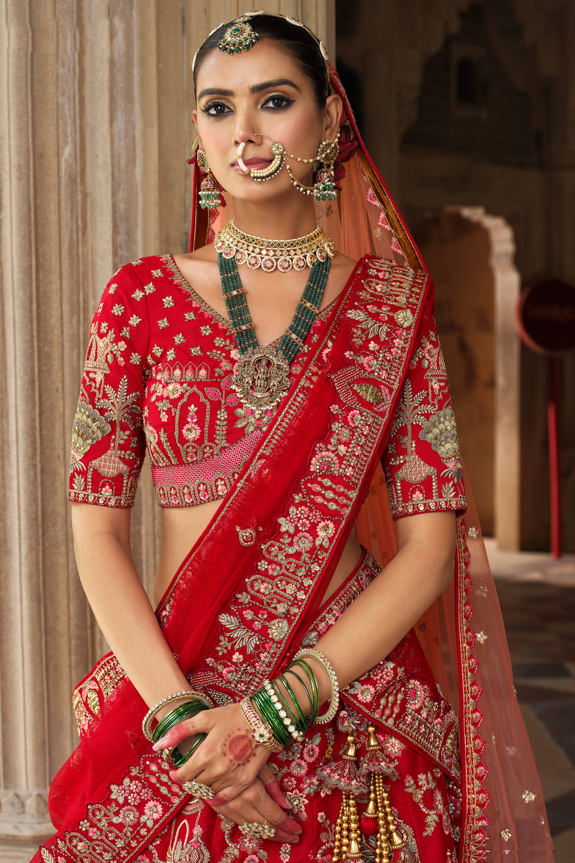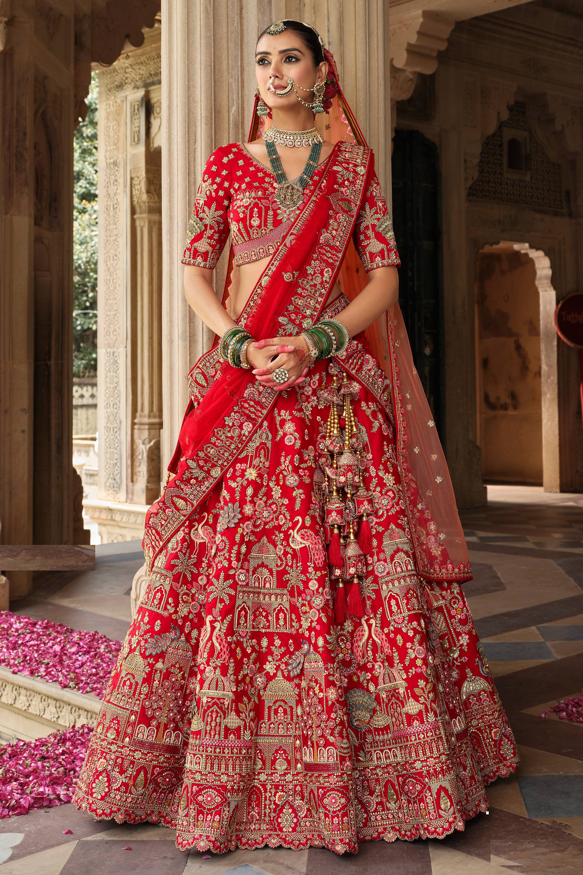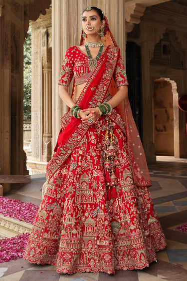 Silk Red Embroidered Bridal Lehenga Choli