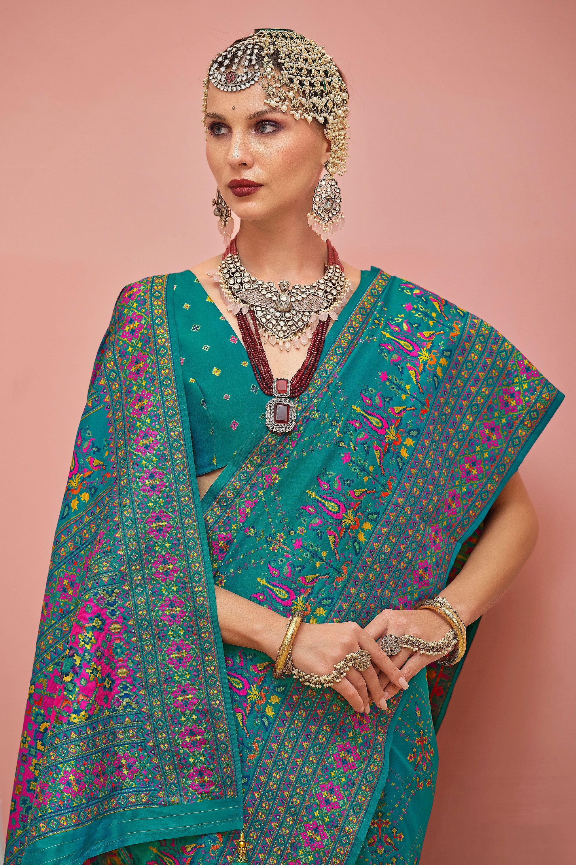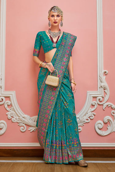 Function Wear Art Silk Weaving Saree In Cyan Color