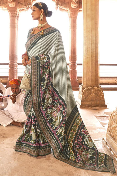 Function Wear Patola Silk Fabric Dark Green Color Printed Magnificent Saree With Semi Stitched Blouse