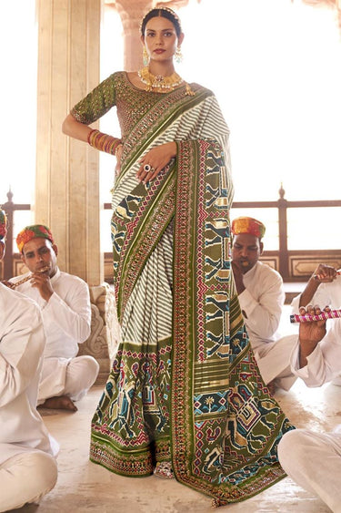 Patola Silk Fabric Function Wear Mehendi Green Color Printed Phenomenal Saree With Semi Stitched Blouse