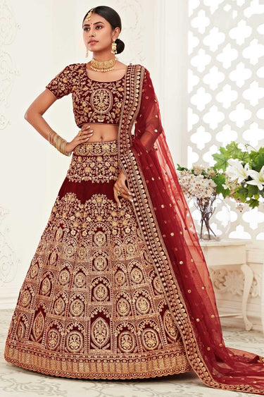 Excellent Velvet Fabric Maroon Color Lehenga With Sequins Work