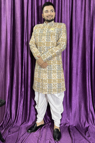 Brown Color Mens Wedding Wear Designer Readymade Peshawari Style Indo Western