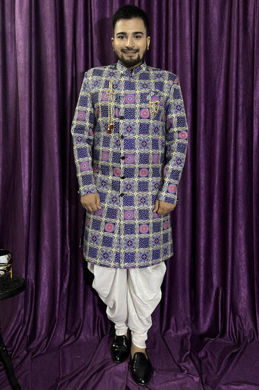 Cotton Stunning Blue Color Wedding Wear Readymade Men Peshawari Style Indo Western