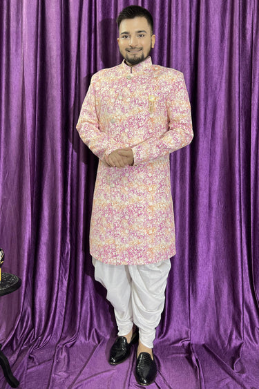 Men Pink Color Wedding Wear Designer Readymade Peshawari Style Indo Western